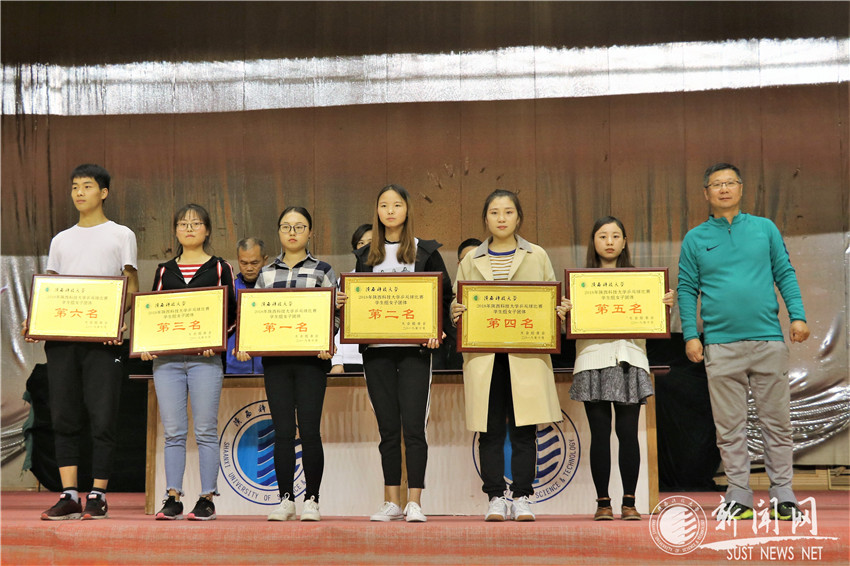 女子團體一至六名:食品學院、機電學院、電信學院、職教學院、經管學院、材料學院。