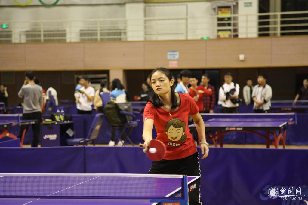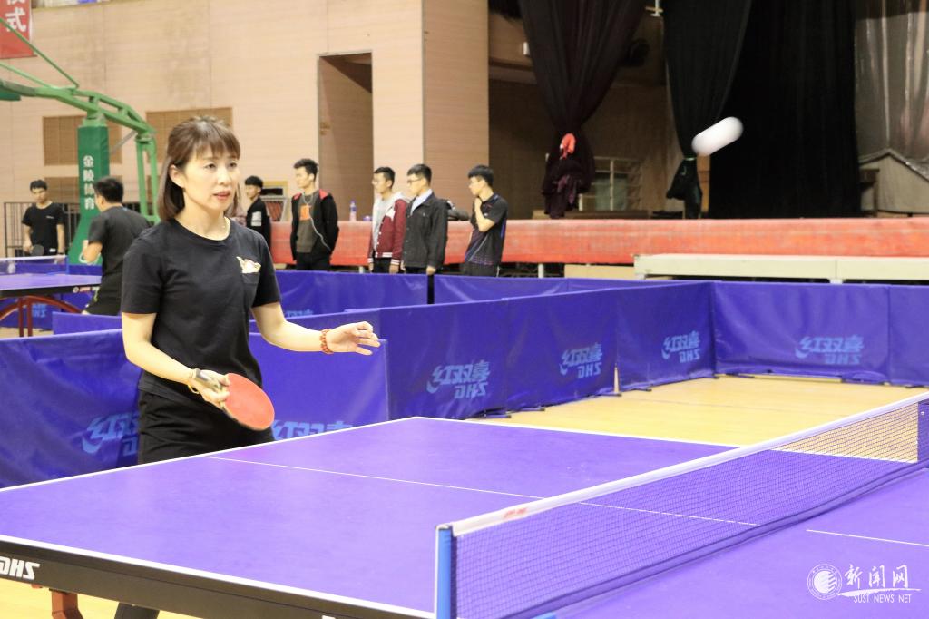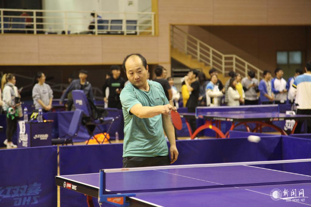 教工男子團隊比賽最吸人眼球,遠遠地就能聽見觀眾們的喝彩聲,文理學院吳云天老師每年都參賽,屬于中年組“健將級”選手,只見他拿出專業(yè)水平,每打一球,就會在臺上搓一下手,拍一下球臺,防止手汗影響發(fā)揮。
