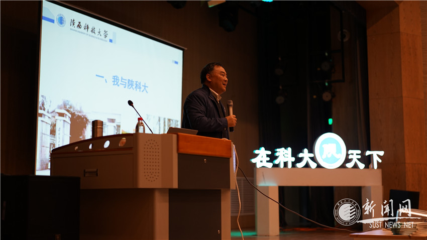 講座伊始,董繼先教授從“我與陜科大”談起,分享了自己的求學(xué),教學(xué)科研,行政工作等個人經(jīng)歷,特別介紹了自己與科大相識相知相伴的數(shù)十載。他以古人的人生觀,價值觀,世界觀來表明自己的立場,又談到了習(xí)近平總書記所提出的“命運(yùn)共同體”“一帶一路”等理念,由“家國情懷”談到“科大情懷”,表達(dá)了自己對科大無限的熱愛。