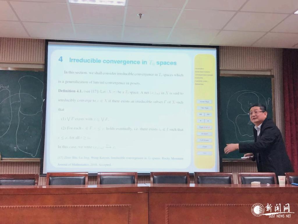 11月22日,應(yīng)文理學(xué)院邀請,西安交通大學(xué)數(shù)學(xué)與統(tǒng)計(jì)學(xué)院院長趙彬教授在我校理科樓文理學(xué)院學(xué)術(shù)報(bào)告廳作了題為“ Two types of convergences in T0 topological spaces”的學(xué)術(shù)報(bào)告。報(bào)告會由文理學(xué)院院長藺小林主持,數(shù)學(xué)系部分教師和研究生參加了報(bào)告會。