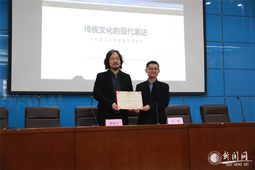 3月21日,詹秦川教授為山東青年政治學(xué)院師生作了題為《傳統(tǒng)文化的現(xiàn)代表達(dá)》的學(xué)術(shù)報(bào)告,工業(yè)設(shè)計(jì)、產(chǎn)品設(shè)計(jì)、環(huán)境設(shè)計(jì)等專(zhuān)業(yè)百余名師生聽(tīng)取了報(bào)告。講座從中國(guó)傳統(tǒng)文化傳承發(fā)展展開(kāi),結(jié)合豐富的實(shí)例指出:設(shè)計(jì)要打破思維定式,我們要運(yùn)用開(kāi)放性的頭腦去做設(shè)計(jì);在當(dāng)今的設(shè)計(jì)實(shí)踐過(guò)程中,也可以運(yùn)用新型材料和傳統(tǒng)工藝結(jié)合的方式,進(jìn)行積極的設(shè)計(jì)創(chuàng)新。最后,詹秦川教授還為大家逐一分析了平面設(shè)計(jì)、時(shí)尚設(shè)計(jì)、交互設(shè)計(jì)、工業(yè)設(shè)計(jì)等方面的前沿動(dòng)態(tài)。報(bào)告取得了圓滿(mǎn)成功,引起了師生強(qiáng)烈的反響。學(xué)術(shù)報(bào)告結(jié)束后,院長(zhǎng)張博頒發(fā)聘書(shū)聘任詹秦川教授為該學(xué)院客座教授。