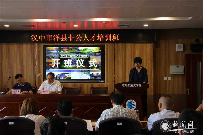 5月27日,漢中市洋縣非公企業(yè)人才培訓班開班儀式在我校馬克思主義學院1013學術(shù)報告廳舉行。馬院黨委書記劉根良、中共洋縣縣委組織部人才辦副主任黃寧,以及洋縣非公企業(yè)的負責人及黨務工作者出席了開班儀式。儀式由馬院院長助理趙小羽主持。