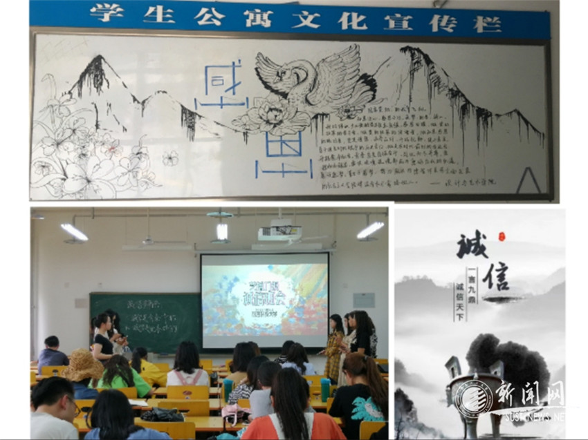 2017級(jí)、2018級(jí)各班通過(guò)開(kāi)展“誠(chéng)實(shí)守信”主題班會(huì),畢業(yè)生通過(guò)舉辦誠(chéng)信教育沙龍等形式,倡導(dǎo)契約精神,幫助學(xué)生樹(shù)立誠(chéng)信觀念。環(huán)藝學(xué)生黨支部承辦“誠(chéng)實(shí)守信”原創(chuàng)海報(bào)設(shè)計(jì)大賽,活動(dòng)共收到23幅海報(bào)設(shè)計(jì)作品,累計(jì)網(wǎng)絡(luò)投票4828票,引發(fā)學(xué)生參與和討論熱情。學(xué)院在sust設(shè)藝青年官微和易班發(fā)布《知恩于心,感恩于行》主題網(wǎng)文,向全院受助學(xué)生發(fā)出倡議,鼓勵(lì)受助學(xué)生積極參與公益活動(dòng)和社會(huì)實(shí)踐,用實(shí)際行動(dòng)感恩社會(huì)、回饋母校。同時(shí),學(xué)院組織受助學(xué)生于學(xué)生四公寓大廳繪制“誠(chéng)信?感恩”公寓文化宣傳板報(bào),引導(dǎo)廣大學(xué)生自立自強(qiáng)、感恩回饋,做資助政策的學(xué)習(xí)者和傳播者,做知恩感恩的踐行者。