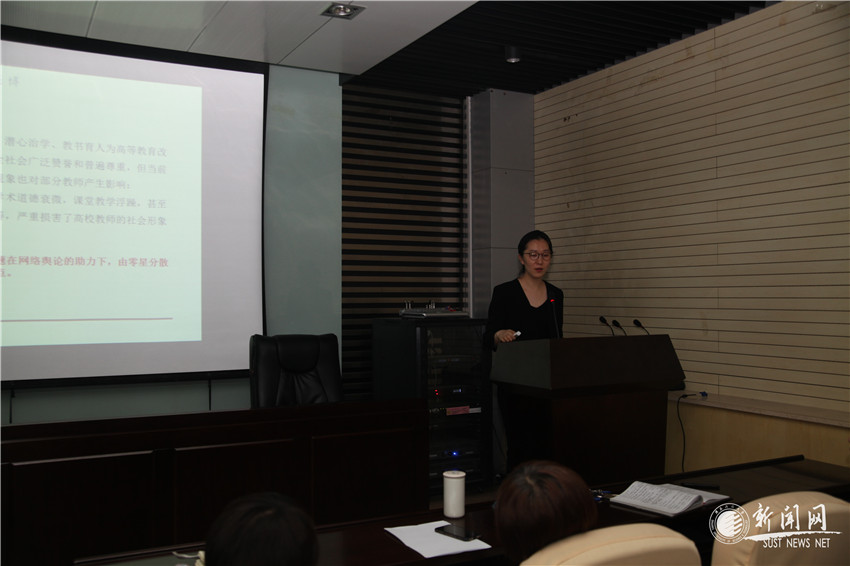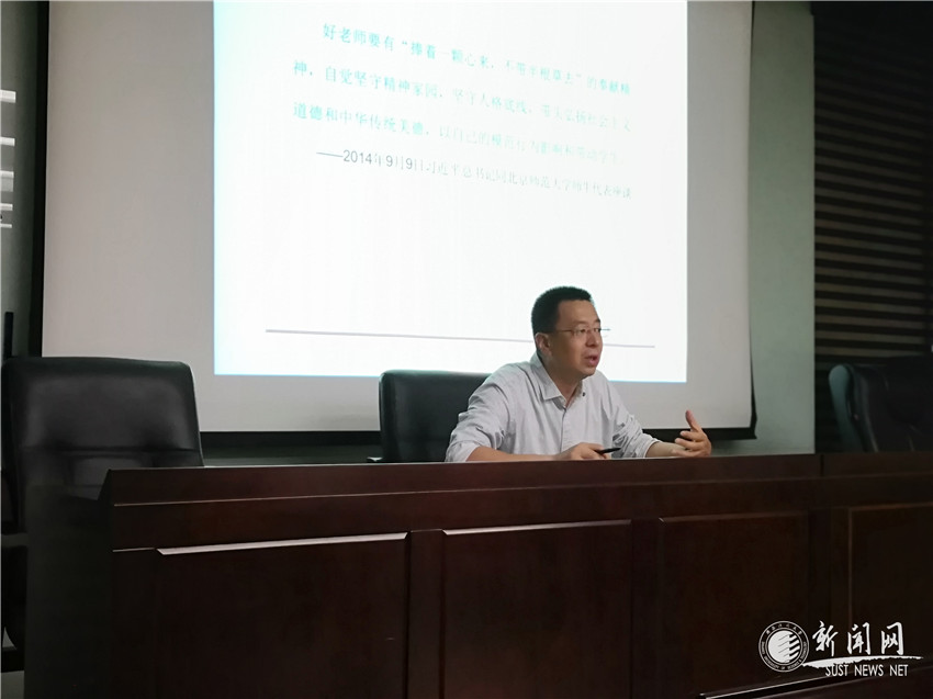 報告會上,高璐從中國共產(chǎn)黨第十九次全國代表大會報告、《中共中央國務(wù)院關(guān)于全面深化新時代教師隊伍建設(shè)改革的意見》以及習(xí)近平總書記在北京大學(xué)師生座談會的講話等多方面闡述了加強師德師風(fēng)建設(shè)的重要性和必要意義,強調(diào)了在加強本科教育質(zhì)量和“雙一流”建設(shè)的戰(zhàn)略環(huán)境下,優(yōu)良的師德師風(fēng)是建設(shè)一支高素質(zhì)、專業(yè)化高校師資隊伍的基石,是實現(xiàn)我國高等教育內(nèi)涵式發(fā)展的關(guān)鍵性保障。她結(jié)合當(dāng)前高校教師師德現(xiàn)狀,分析并指出高校教師屢禁不止的師德失范問題在網(wǎng)絡(luò)輿論的助力下,由零星分散的狀態(tài)演化成社會輿論關(guān)注的焦點。重點解讀了《新時代高校教師職業(yè)行為十項準(zhǔn)則》、《教育部關(guān)于高校教師師德失范行為處理的指導(dǎo)意見》,以及在此基礎(chǔ)上制定出臺的《陜西科技大學(xué)教師師德失范行為負(fù)面清單及處理辦法(試行)》(陜科大黨〔2019〕6 號)。
