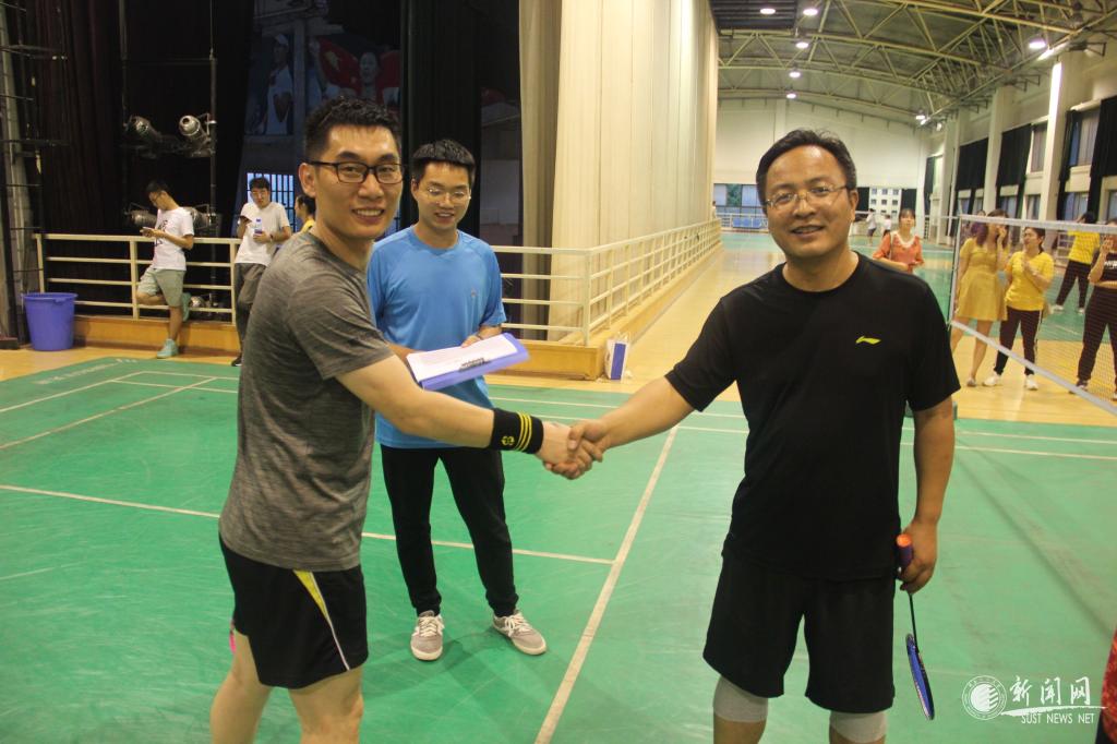 為加強我校研究生思想政治教育工作,全面落實研究生導(dǎo)師立德樹人職責(zé),推動導(dǎo)學(xué)關(guān)系建設(shè),豐富師生的科研生活,展現(xiàn)我校師生良好的精神風(fēng)貌和昂揚的斗志活力,近日由研究生院(研工部)、校團委、校體育部共同主辦,校研究生會協(xié)辦的2019年“多彩研途·師生‘羽’共”研究生師生羽毛球賽成功舉辦。校體育部副主任徐廣華、校團委書記李鵬、研究生院(研工部)副部長陳李斌出席決賽并為獲獎隊伍頒獎。