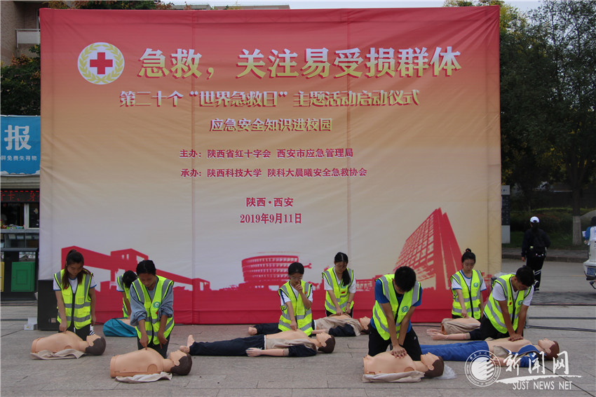上午10時(shí),陜西省紅十字會(huì)應(yīng)急救護(hù)培訓(xùn)師史曄靈為200余名陜科大學(xué)生開展了應(yīng)急救護(hù)知識(shí)專題講座。11時(shí)30分,在沁園廣場(chǎng)舉行活動(dòng)啟動(dòng)儀式,胥俊杰在致辭中高度肯定我校對(duì)大學(xué)生應(yīng)急安全教育的重視及取得的成績(jī),隨后李曉宣布活動(dòng)正式啟動(dòng),晨曦安全急救協(xié)會(huì)現(xiàn)場(chǎng)展示了校園突發(fā)事件應(yīng)急救護(hù)演練以及心肺復(fù)蘇技能。