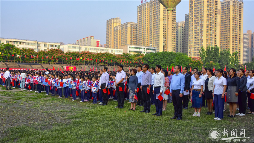 金秋送爽,萬里河山披錦繡;丹桂飄香,五星紅旗迎風(fēng)飄。70載風(fēng)雨兼程,70載砥礪前行。為激發(fā)附中師生強(qiáng)烈的愛國熱情,增強(qiáng)民族自豪感與自信心,堅(jiān)定為祖國繁榮富強(qiáng)努力奮斗遠(yuǎn)大理想,在全國上下喜迎新中國成立70周年之際,附中舉行了一場莊嚴(yán)而又特別的升國旗儀式。附中校長王琪,黨委書記王幃,副校長何理、楊建兵、張健康,校長助理李益民出席升旗儀式。全校7000余名師生參加了升旗儀式。儀式由附中黨辦校辦副主任杜源主持。