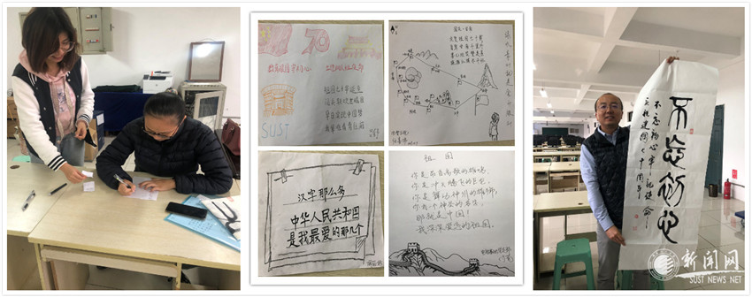 10月9日,教工綜合黨支部黨員結(jié)合自身成長的點(diǎn)滴,討論了國慶閱兵和聯(lián)歡活動(dòng)的盛況,并拿出紙筆為祖國書寫“情詩”,每一副畫卷都透露著黨員同志對(duì)祖國熱烈而深沉的愛。通過書寫與分享討論,堅(jiān)定了支部黨員報(bào)效祖國、建設(shè)祖國的信念。