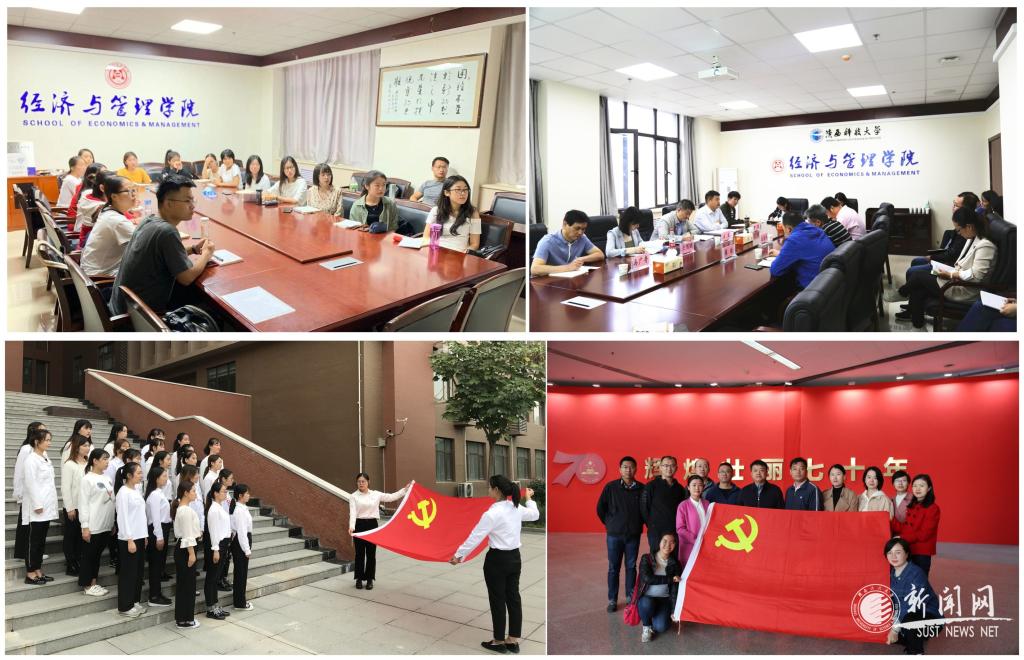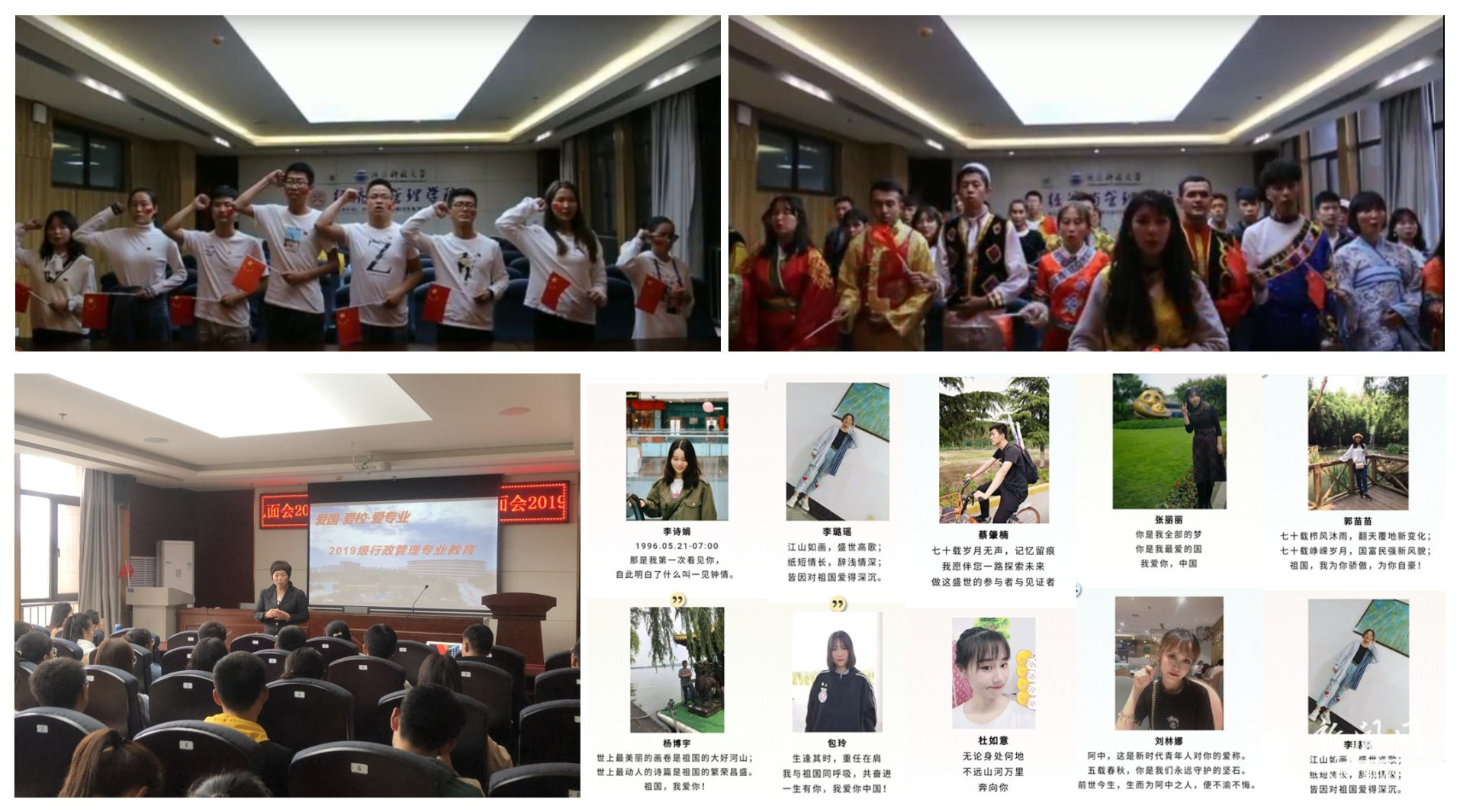 行政教工黨支部組織行政管理專業(yè)學(xué)生舉行了以“愛國?愛校?愛專業(yè)”為主題的教育活動,教工黨員以專業(yè)為背景,結(jié)合新中國70年的發(fā)展史和我?!叭齽?chuàng)兩遷”的歷史,引導(dǎo)學(xué)生以高標(biāo)準(zhǔn)的專業(yè)素養(yǎng)為核心競爭力,自覺把愛國、愛校信仰落實為具體行動。營銷學(xué)生黨支部開展“歌聲禮贊祖國”主題黨日活動,黨員與2019級預(yù)科學(xué)生一同唱響《愛我中華》,動聽的歌聲充分展示出學(xué)生黨員和少數(shù)民族學(xué)生的精神風(fēng)貌,更唱響了中華兒女一家親的主旋律。行政學(xué)生黨支部開展“三行情詩,向祖國表白”主題黨日活動,每位黨員用簡短的文字、真摯的情感表達(dá)自己對祖國母親的熱愛。營銷教工黨支部、辦公室黨支部等赴曲江國際會展中心參觀“輝煌壯麗七十年?追趕超越再出發(fā)——陜西省慶祝新中國成立70周年成就展”,黨員們認(rèn)真聆聽講解、積極參與互動,在展廳的黨旗面前重溫入黨誓詞,并在“祖國,我想對你說”的展區(qū)旁寫下自己對祖國的美好祝福。