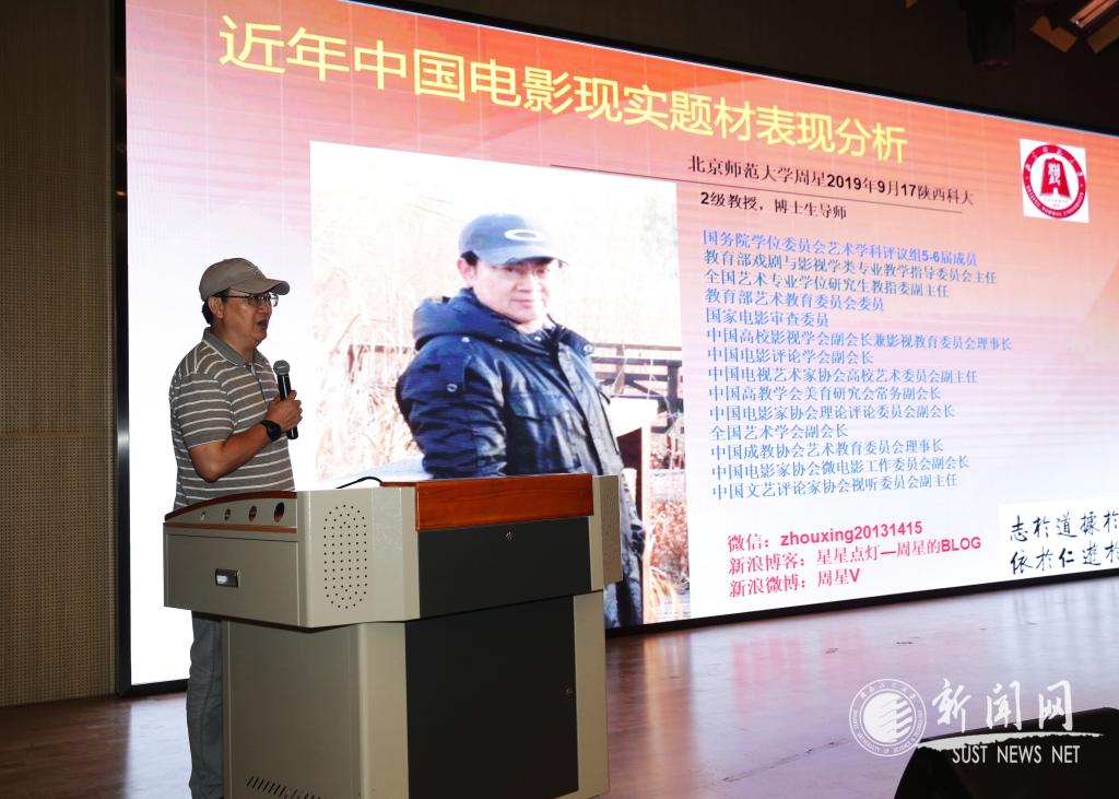 9月17日晚七時(shí),教育部高校戲劇與影視學(xué)教學(xué)指導(dǎo)委員會(huì)主任、國(guó)務(wù)院學(xué)位委員會(huì)第5-6屆藝術(shù)學(xué)科評(píng)議組成員、全國(guó)藝術(shù)專業(yè)學(xué)位研究生教育教學(xué)指導(dǎo)委員會(huì)副主任、北京師范大學(xué)周星教授作客我?!扒把乜茖W(xué)論壇”。在設(shè)計(jì)與藝術(shù)學(xué)院五樓小劇場(chǎng)作了題為“近年中國(guó)電影現(xiàn)實(shí)表現(xiàn)分析”的學(xué)術(shù)報(bào)告。院黨委書(shū)記杜致博,學(xué)科帶頭人劉子建、田龍過(guò),學(xué)術(shù)骨干吉平及相關(guān)專業(yè)師生到場(chǎng)參加,報(bào)告會(huì)由設(shè)計(jì)與藝術(shù)學(xué)院副院長(zhǎng)米高峰教授主持。