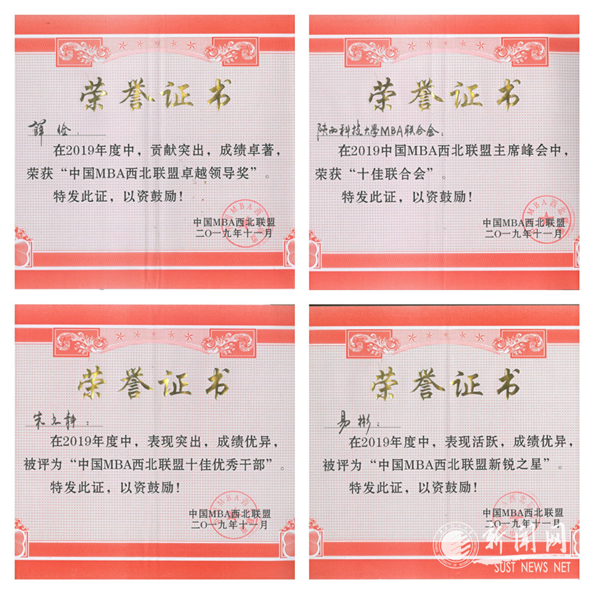 ---參加2019中國(guó)MBA西北聯(lián)盟主席峰會(huì)并獲獎(jiǎng)。11月3日,中國(guó)MBA西北聯(lián)盟主席峰會(huì)在西北工業(yè)大學(xué)國(guó)際會(huì)議中心舉行。經(jīng)管學(xué)院副院長(zhǎng)薛儉教授受邀作為我院MBA教育中心代表參加了本次會(huì)議。會(huì)議期間,30多所西部MBA教育培養(yǎng)院校以“項(xiàng)目管理”為專(zhuān)題進(jìn)行了討論,薛儉教授代表我校MBA教育中心做了經(jīng)驗(yàn)交流。大會(huì)評(píng)選出了2019年十佳特色商學(xué)院、十佳MBA聯(lián)合會(huì)等獎(jiǎng)項(xiàng),并發(fā)放獲獎(jiǎng)證書(shū)和獎(jiǎng)杯。薛儉教授榮獲MBA卓越領(lǐng)導(dǎo)獎(jiǎng)、我院MBA聯(lián)合會(huì)獲得十佳聯(lián)合會(huì)獎(jiǎng)、MBA學(xué)員朱文靜獲得十佳優(yōu)秀干部獎(jiǎng)、MBA學(xué)員易彬獲得新銳之星獎(jiǎng)。