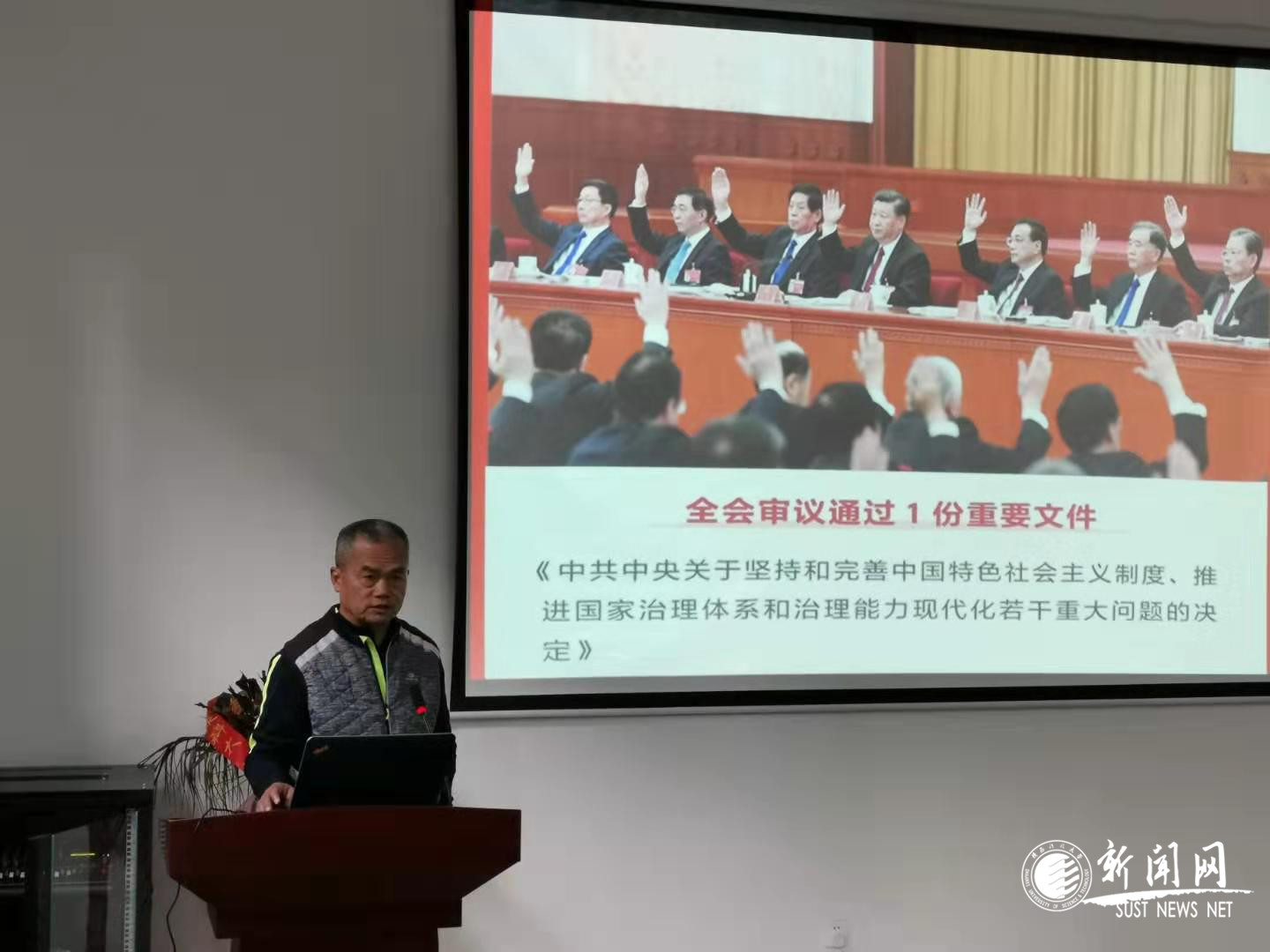 為扎實(shí)推進(jìn)“不忘初心、牢記使命”主題教育,及時學(xué)習(xí)領(lǐng)會黨的十九屆四中全會精神,2019年11月14日上午,體育部召開了中共中央十九屆四中全會精神專題學(xué)習(xí)會,全體教師參加了會議。會議由體育部黨支部書記徐廣華主持。