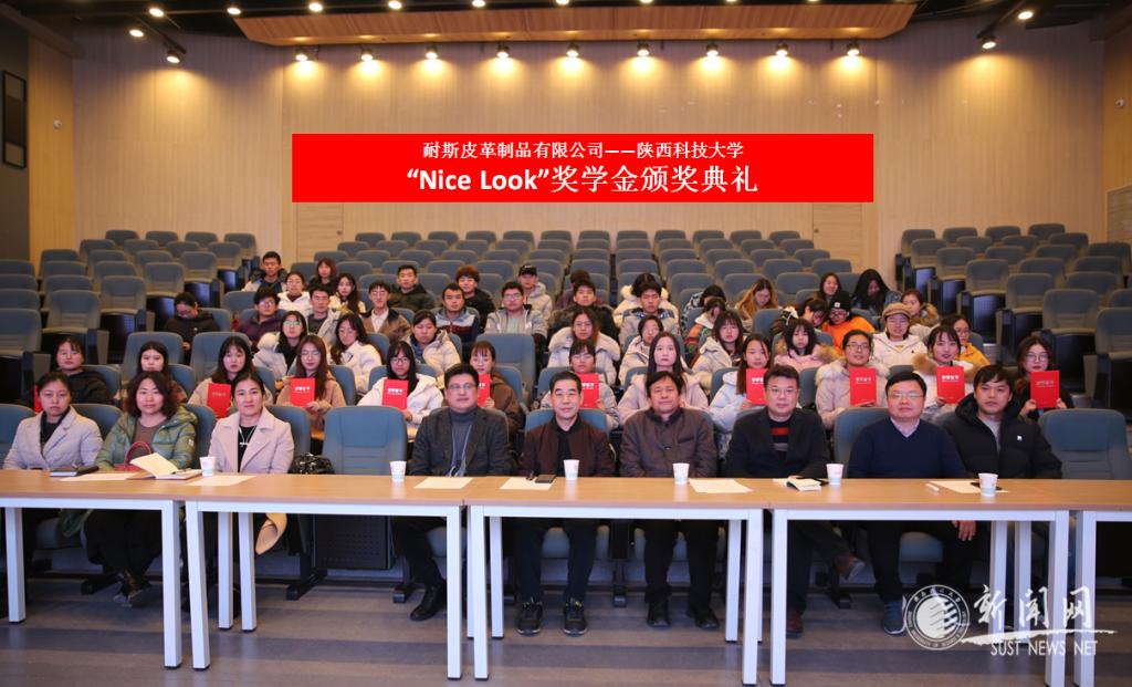 12月23日下午,“NiceLook”獎(jiǎng)學(xué)金頒獎(jiǎng)典禮在設(shè)計(jì)與藝術(shù)學(xué)院學(xué)術(shù)報(bào)告廳順利舉行。我校革制品93級(jí)校友、威海市耐斯皮革制品有限公司劉軍總經(jīng)理,設(shè)計(jì)與藝術(shù)學(xué)院黨委書記杜致博、輕工科學(xué)與工程學(xué)院院長弓太生、服裝設(shè)計(jì)與工程專業(yè)全體教師及學(xué)生出席本次頒獎(jiǎng)典禮。頒獎(jiǎng)典禮由副院長王偉偉主持。