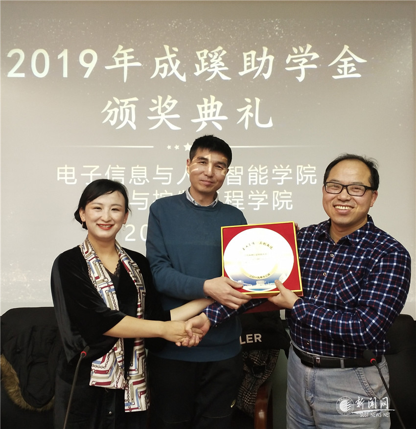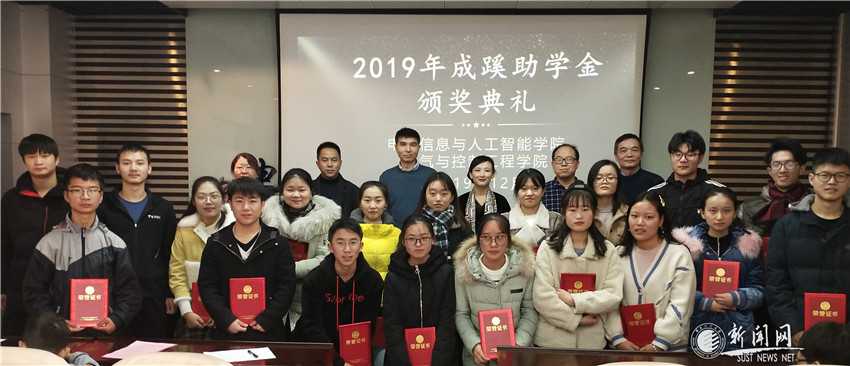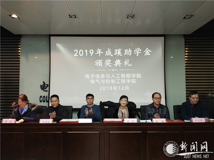 12月27日上午,電氣與控制工程學院、電子信息與人工智能學院在實驗樓2A206報告廳聯(lián)合舉行2019年“成蹊助學金”頒獎儀式。上海成蹊信息科技有限公司(以下簡稱“成蹊公司”)財務(wù)總監(jiān)陳泥、高級人事經(jīng)理謝青、電控學院副院長(主持工作)湯偉、電智學院黨委副書記嚴渭青、陜西科技大學電信校友會秘書長李光明、電智學院物聯(lián)網(wǎng)工程專業(yè)負責人李頎出席頒獎儀式,頒獎儀式由李光明主持。