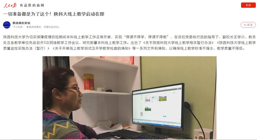 人民日報(bào)APP:一切準(zhǔn)備都是為了這個(gè)!陜科大線上教學(xué)啟動(dòng)在即