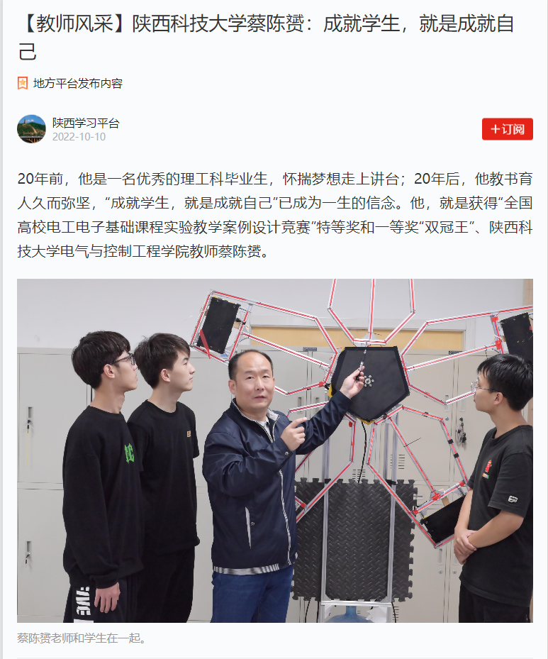 學(xué)習(xí)強國:【教師風(fēng)采】陜西科技大學(xué)蔡陳赟:成就學(xué)生,就是成就自己
