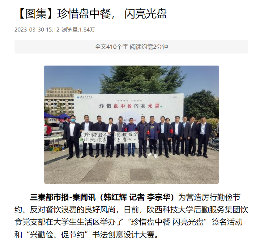 近日,群眾新聞、秦聞報道我校開展“珍惜盤中餐 閃亮光盤”文明實踐活動。