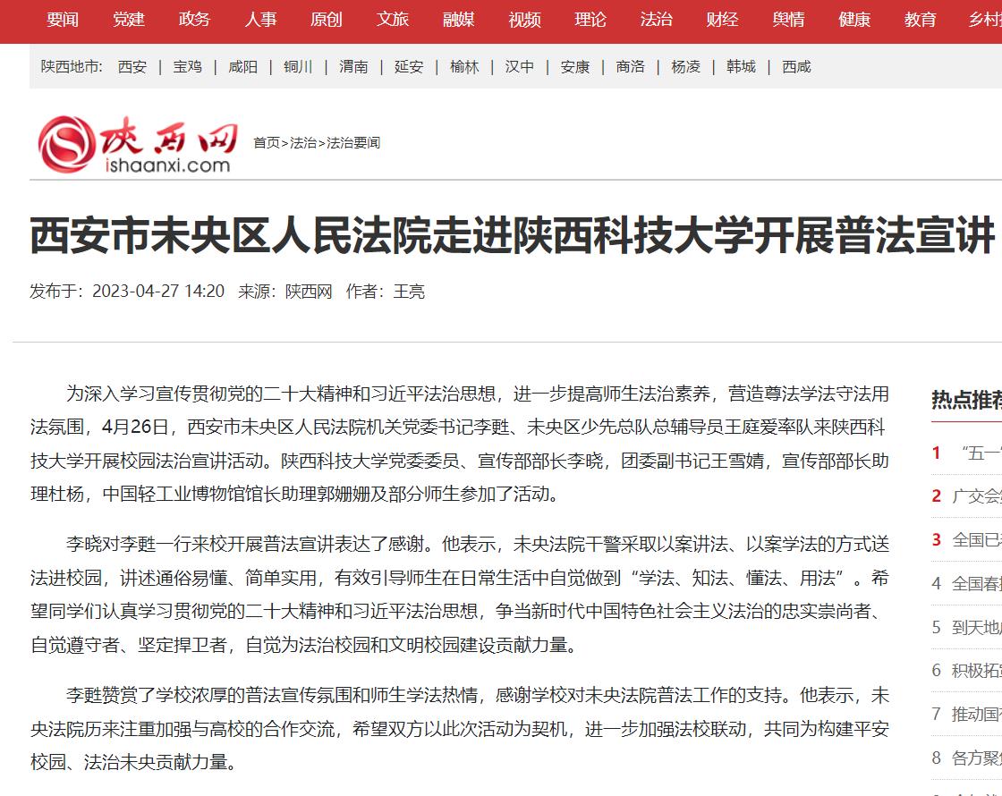 陜西網(wǎng):西安市未央?yún)^(qū)人民法院走進陜西科技大學開展普法宣講